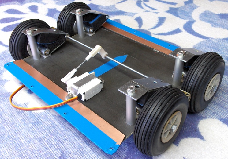 Vďaka pomerne malému rozchodu kolies hlavného (zadného) podvozka, sme upustili od brzdenia predného kolesa (predných kolies – dvojmontáže) a rozhodli sme sa brzdiť zadné kolesá. Eventuálny nerovnomerný brzdný účinok by sa práve vďaka ich malému rozchodu nemal nejako výraznejšie prejavovať. Navyše: ak budeme brzdiť lej jednu z dvoch „náprav“, tak tá druhá by svojim „vedením stopy“ mala zabezpečiť stabilitu modelu počas brzdenia.