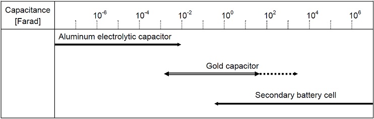Porovnanie kapacitných rozsahov kondenzátorov a sekundárnych článkov (akumulátorov).