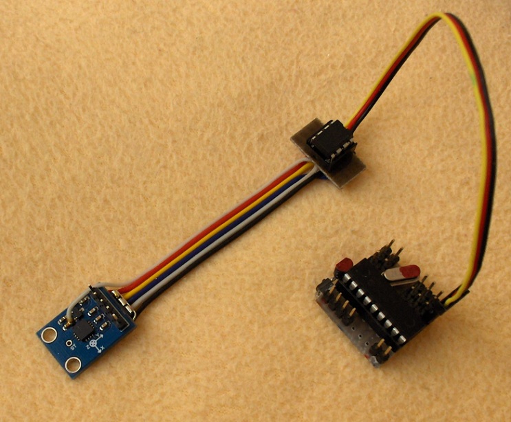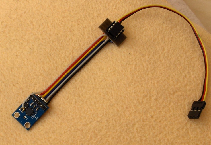 No a tak sme sa do toho pustili. Na HobbyKingu sme si vyhliadli vhodný 3-osý akcelerometer. Kým sme sa spamätali, bol Back-order a tak sme podobný (a dokonca lepší (so vstavaným stabilizátorom) a lacnejší) kúpili na eBayi. Po počiatočných experimentoch a „hrátkach“ s nakláňaním tohto čuda, sme usúdili, že by sa miroslavovo „skromnučké“ prianie predsa len malo dať realizovať.