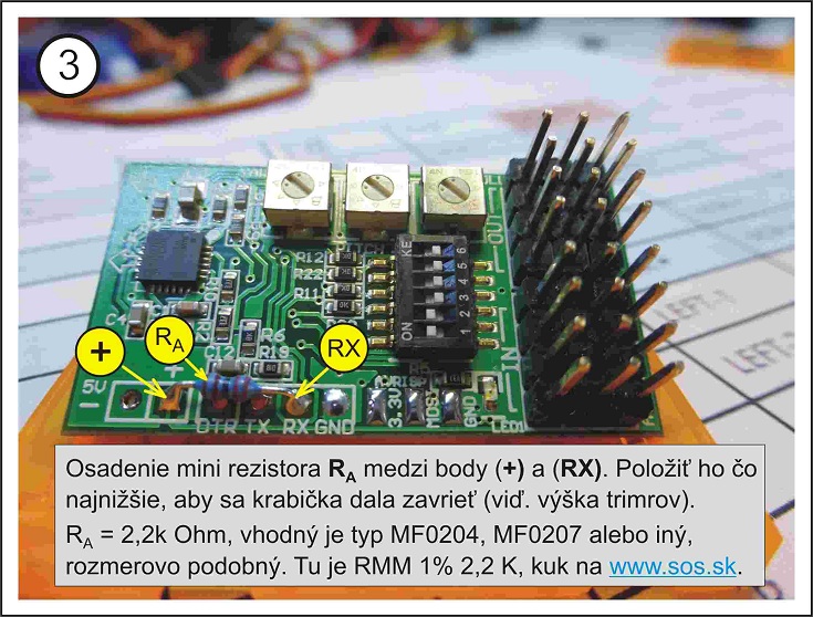 HW úprava – doplnenie SBUS invertora na dosku stabilizátora